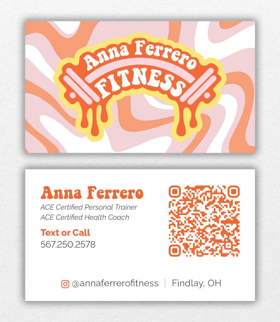 Anna Ferrero Fitness is the branding for a personal trainer in Findlay, OH. The graphics are fun and bright both to convey Anna’s personality and because she strives to help her clients find fun in their fitness journey. The logo mark also conveys the hard work it takes to achieve fitness goals through the image of the bent barbell with stylized sweat dripping off. The barbell also represents the focus Anna places on teaching her clients how to lift weights correctly.